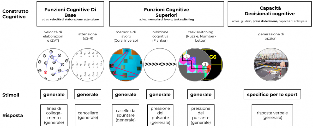 Figura 2: Illustrazione delle funzioni cognitive e del modo in cui vengono valutate nel progetto.